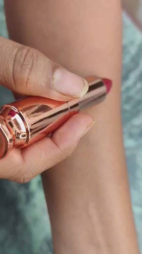 Mystic Sangria is a deep wine-red crème matte lipstick made for bold Indian looks. Rich, intense pigment meets a smooth matte finish that feels comfortable on the lips. Perfect for festive wear, evening glam, and statement makeup.